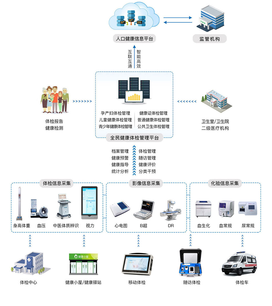 普瑞森·區域全民健康體檢管理平臺以“輔政、助醫、惠民”為設計理念,采用云計算、大數據、物聯網、移動互聯網等信息技術,通過整合全民醫療健康信息資源,構建城市級健康醫療大數據中心,為健康城市打造堅實的數據基礎。 平臺實現各橫向業務機構和縱向管理機構信息互聯互通與業務協同,促進形成有效的分級診療服務體系,優化區域醫療資源配置,提高醫療服務水平和醫療質量,降低醫療費用,提升衛生綜合管理水平和政府綜合決策能力,給健康城市建設提供堅實的信息化基礎。